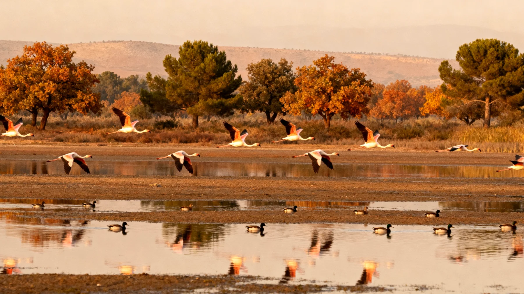 Le parc accueille plus de 200 espèces d’oiseaux, dont certaines comptent parmi les plus rares de la région méditerranéenne. En février, vous pourrez admirer des foulques macroules par dizaines de milliers, formant d’immenses tapis noirs sur les eaux du lac. Les oies cendrées, canards siffleurs, sarcelles et flamants roses complètent ce tableau vivant. Prévoyez des jumelles pour profiter pleinement du spectacle. Les observatoires aménagés le long des berges permettent d’approcher les oiseaux sans les déranger, offrant des opportunités photographiques extraordinaires même avec un équipement basique.